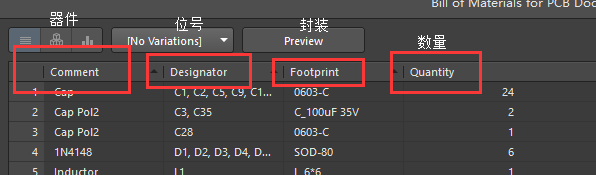 BOM表是为了我们可以方便采购相应的器件而输出的文件。