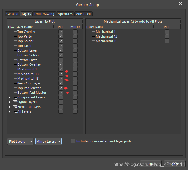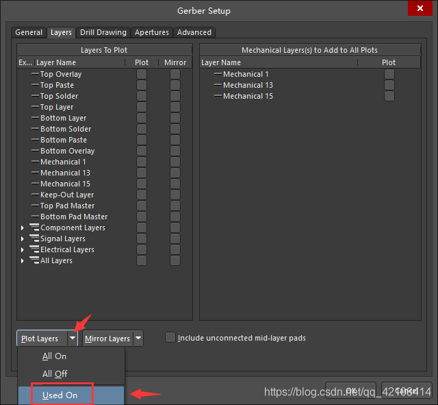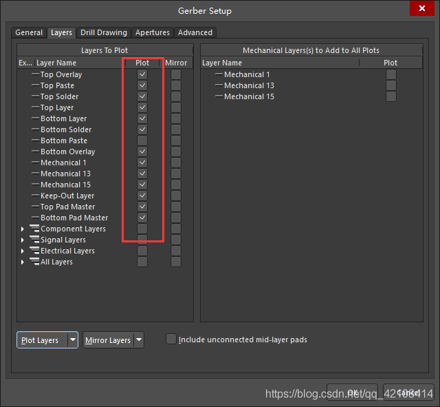 6、去掉以下的勾选,若是板框是用Mechanical1层画的话,那就保留勾选,由于我是用keep-out Layer层画的,因此我保留keep-out Layer