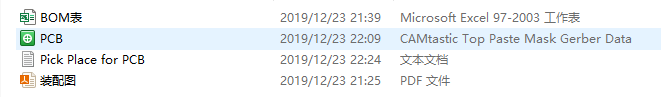 ASM文件夹中:一个BOM表、一个顶层钢网文件、坐标文件、装配图。