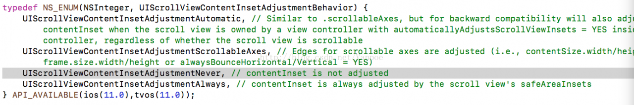 UIScrollViewContentInsetAdjustmentBehavior 是一个枚举类型,值有以下几种: