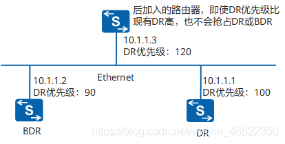 当处于同一网段的两台路由器同时宣布自己是DR时,DR优先级高者胜出。如果优先级相等,则Router ID大者胜出。如果一台路由器的优先级为0,则它不会被选举为DR或BDR。