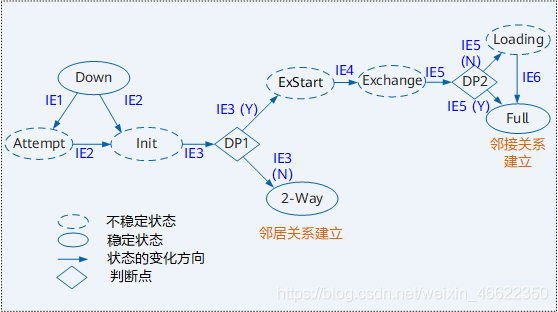 - Full:建立邻接。两端设备的LSDB已同步,本端设备和邻居设备建立了完全的邻接关系。