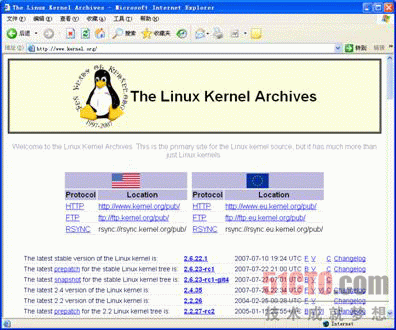 Linux内核的版本号命名是有一定规则的,版本号的格式通常为“主版本号.次版本号.修正号”。主版本号和次版本号标志着重要的功能变动,修正号表示较小的功能变更。以2.6.22版本为例,2代表主版本号,6代表次版本号,22代表修正号。其中次版本还有特定的意义:如果是偶数数字,就表示该内核是一个可以放心使用的稳定版;如果是奇数数字,则表示该内核加入了某些测试的新功能,是一个内部可能存在着BUG测试版。如2.5.74表示是一个测试版的内核,2.6.22表示是一个稳定版的内核。读者可以到Linux内核官方网站http://www.kernel.org/下载最新的内核代码,如图1-3所示。