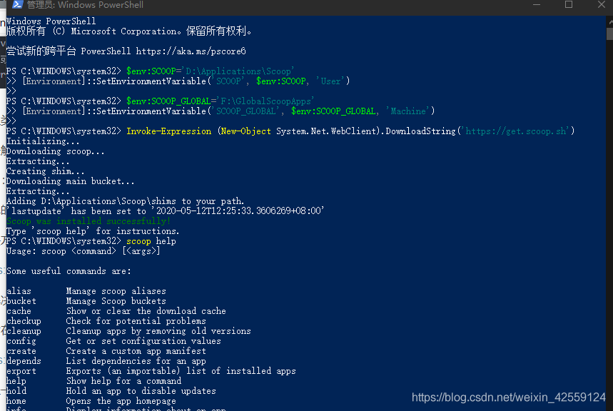 Invoke-Expression (New-Object System.Net.WebClient).DownloadString('https://get.scoop.sh')