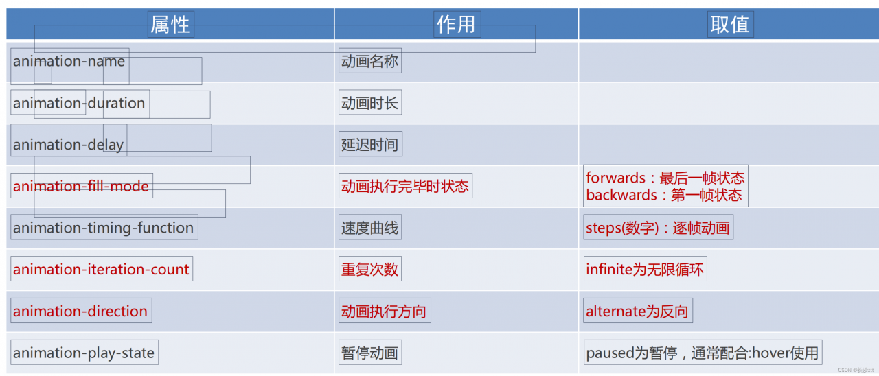 使用 animation 添加 动画 效果动画效果:实现 多个状态 间的变化过程,动画 过程可控 (重复播放、最终画面、是否暂停)过渡可以 实现2个状态间的变化过程动画的本质是快速切换大量图片时在人脑中形成的具有 连续性的画面l 构成动画的最小单元: 帧或动画帧