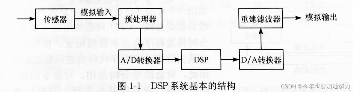 实际上,为了完成数字信号处理的任务,除了图1-1所示的DSP基本结构之外,还必须在DSP系统中配置人机接口、存储器、通信接口、测试接口和电源设备等。