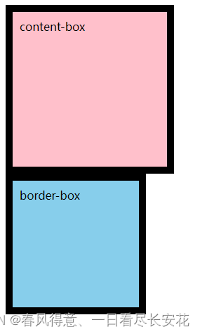 1.content-box:默认的盒子类型,盒子的实际宽度为,设计宽度+左右padding+左右border;