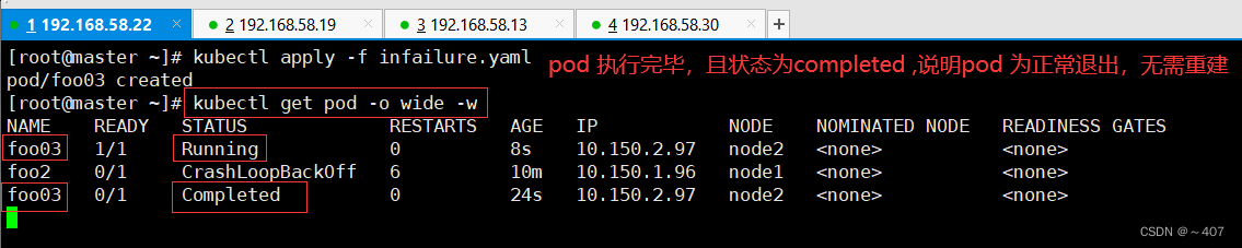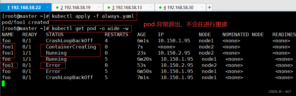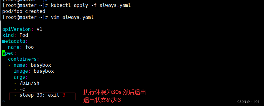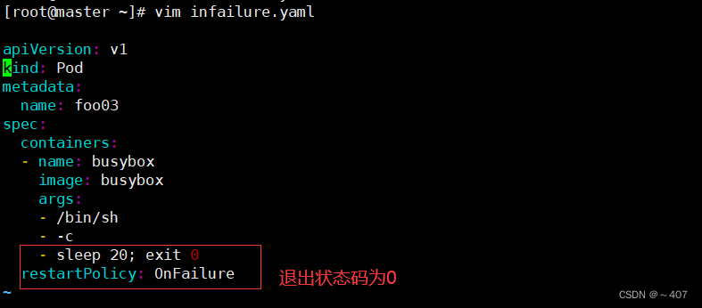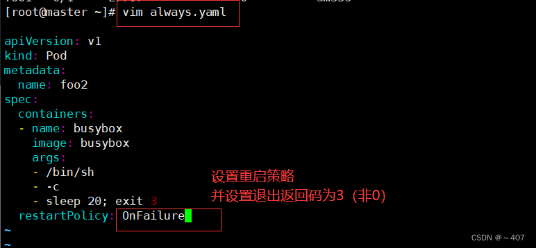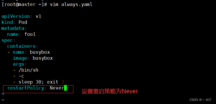 我们在创建pod时,有时使用的为一次性pod,正常执行完退出后,不需要对其进行重启,这时就需要设置PnFailure