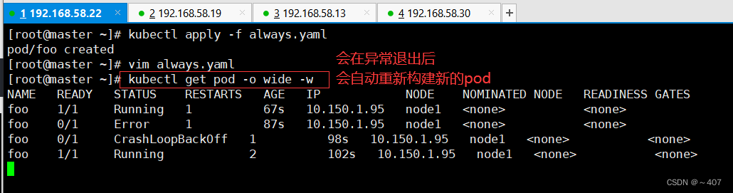 k8s集群的自愈也是对资源的一个重新构建, 在k8s中是没有重启一说的。我们 常说的重启,其实就是对pod资源的重新构建,那么k8s集群在对资源进行管理时,其“重启”规则又是什么呢?