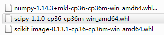 pip install numpy-1.14.3+mkl-cp36-cp36m-win_amd64.whlpip install scipy-1.1.0-cp36-cp36m-win_amd64.whlpip install scikit_image-0.13.1-cp36-cp36m-win_amd64.whl4.使用测试代码