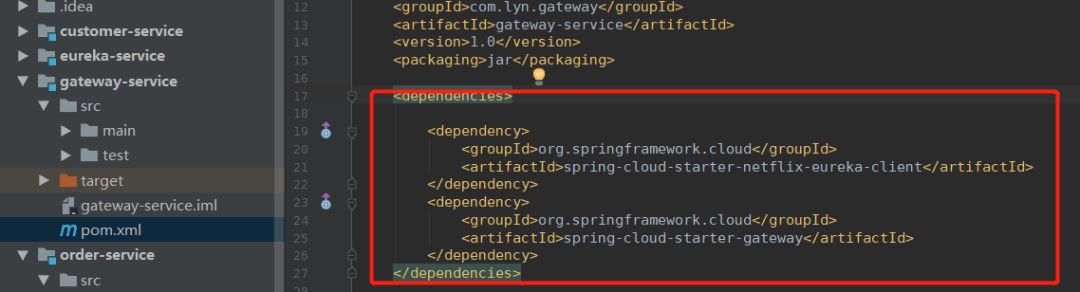 首先我们基于之前的演示项目,再创建一个gateway-service模块,添加依赖: