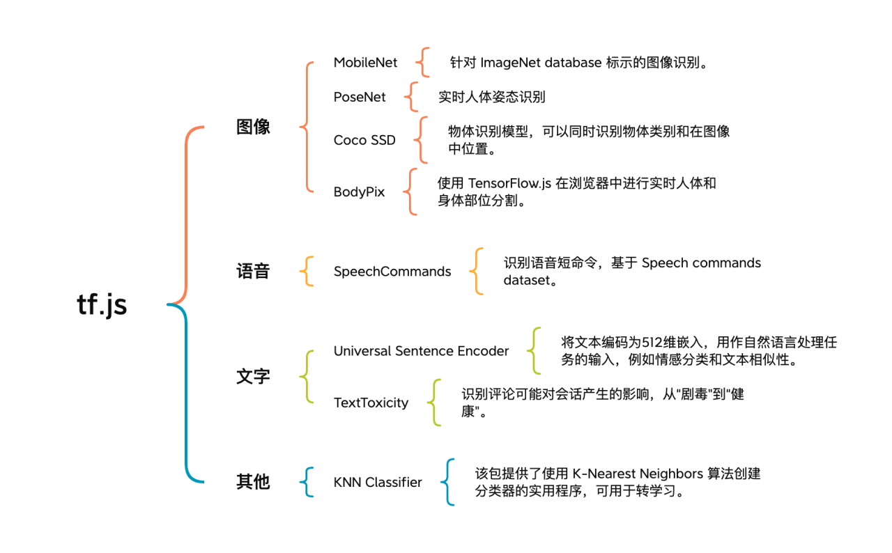 TensorFlow.js 是一个开源硬件加速 JavaScript 库,用于训练和部署机器学习模型。它可以让我们直接在浏览器中训练和部署机器学习模型的 JavaScript 库,可以非常灵活地进行 AI 应用的开发: