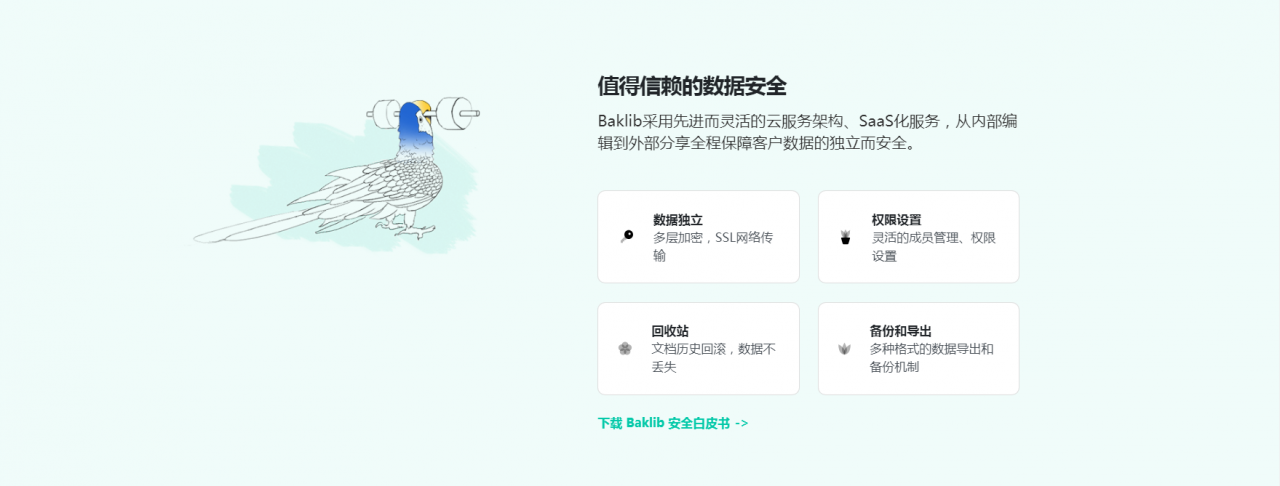 Baklib支持数据的备份和多种格式的导出,采用SSO单点登录与SSL加密技术,从内部编辑到外部分享全程保障客户数据的独立而安全,为你的知识、文档保驾护航。