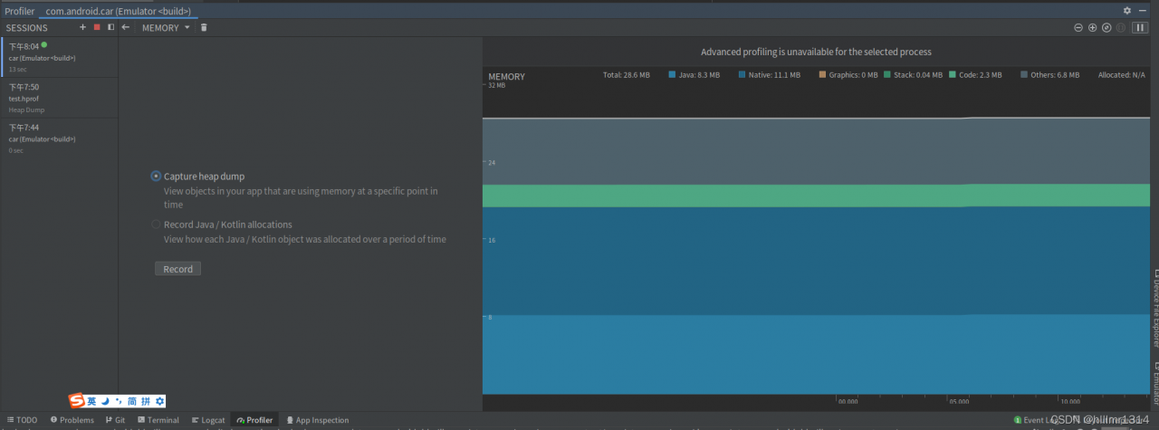 通过代码调用Debug.dumpHprofData()获取当前应用的heap。