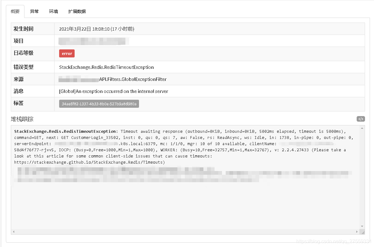 在使用的StackExchange.Redis的NuGet包连接Redis的时候发现时不时的发现Redis连接超时