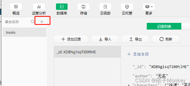 这是在云开发添加数据,下一步就是在前端获取你添加的数据