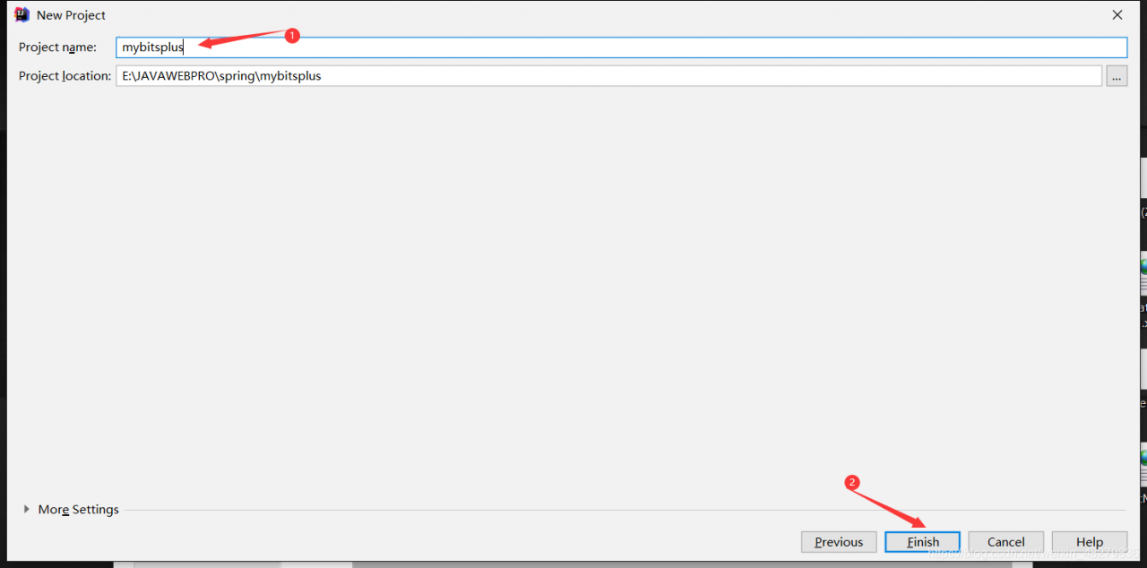 - 接下来修改自己的项目名称就好了,想起啥起啥,看自己,然后Finish。如下图: