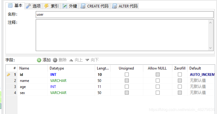 - 这里可以根据自己创建的数据库来操作,我就是用我一直在用的测试数据库以及表,大家可以看自己,我的仅作参考就可以了,如下图: