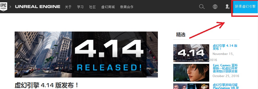 进去之后,点击右上角的获取虚幻4游戏引擎。