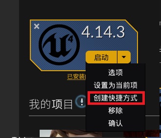 由于受到网络的原因的限制,这个软件有时候会登录不上,为了不受影响。可以在右侧引擎版本处, 启动框有一个朝下的小三角,点击,选择创建快捷方式。之后就可以直接在桌面上启动UE4.