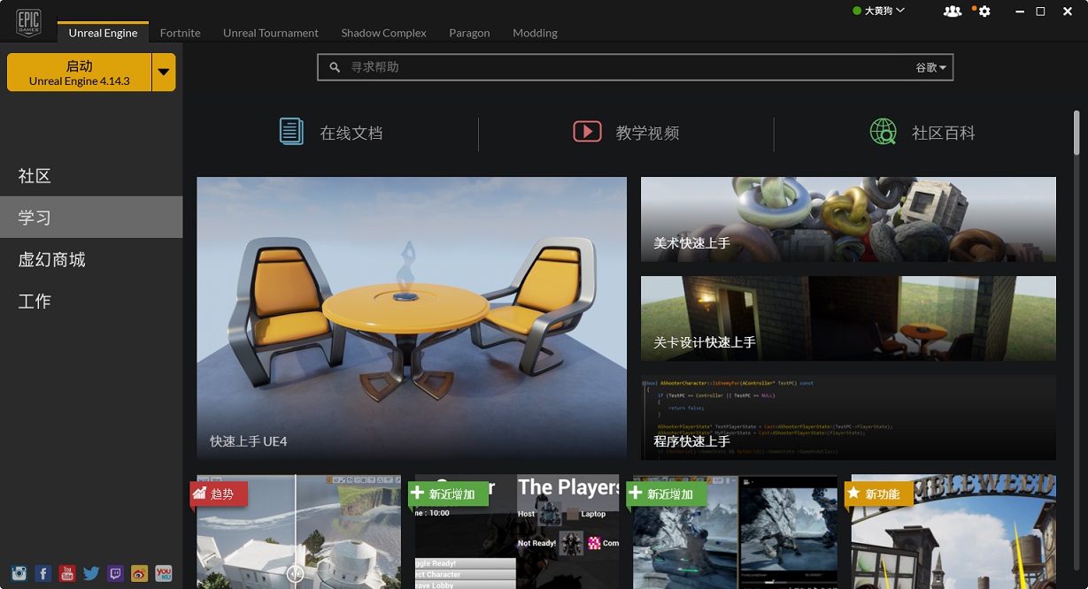 Epic软件里面也有许多可以学习的资料,有几个做得不错的官方demo,可以下载到电脑自己研究。虚幻商城里面的素材大部分收费。