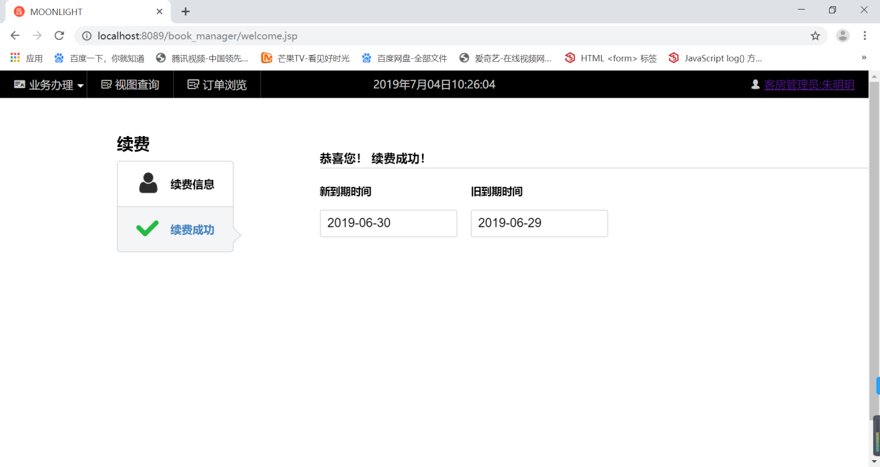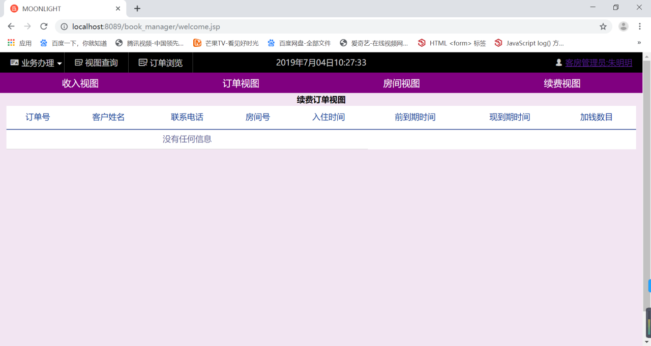 (5)提供简单的酒店工作人员的添加住户和续费房间功能