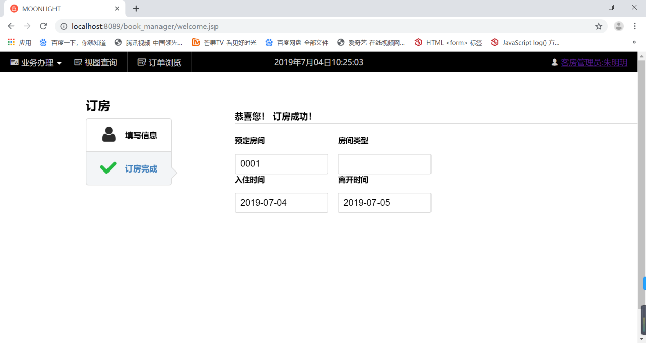 | 显示该客户订房成功 | 数据库中储存该客户 | 通过 | |