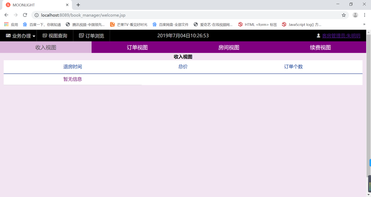 Key words: Hotel room management; Java programming; web front-end programming; interface module; statistical module
