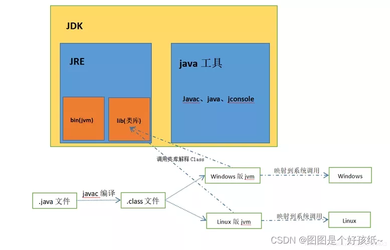 JDK、JRE、JVM之间的区别JDK:Java Develpment Kit java 开发⼯具JRE:Java Runtime Environment java运⾏时环境JVM:java Virtual Machine java 虚拟机 这三者的关系是:一层层的包含关系。 JDK>JRE>JVM版权声明:本文为m0_70734549原创文章,遵循CC 4.0 BY-SA版权协议,转载请附上原文出处链接和本声明。原文链接:https://blog.csdn.net/m0_70734549/article/details/125943556