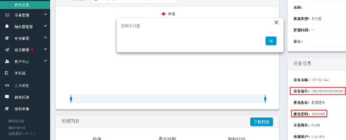 3、将此处的设备编号和通讯密码填入到T2模块中