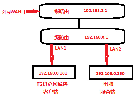 采用Client模式,USR-TCP232-T2以太网模块以下简称T2模块。
