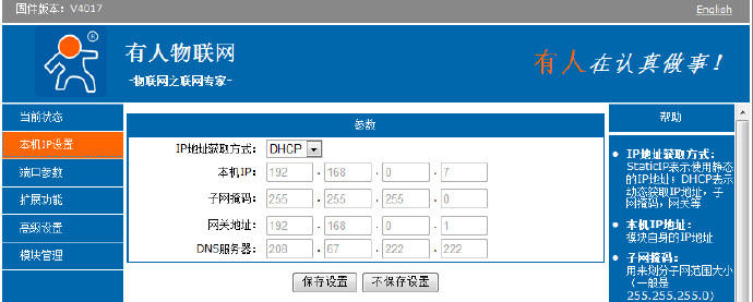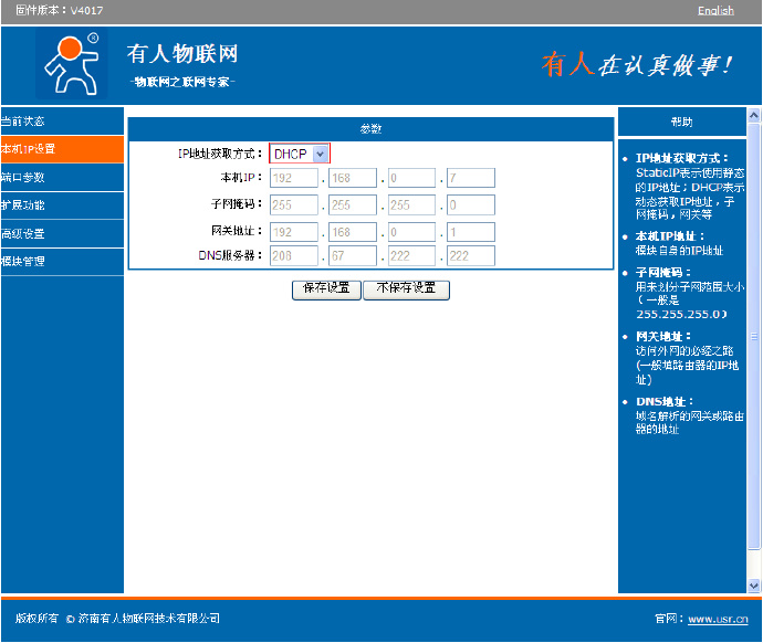 一般电脑不具备 IP 地址分配的能力, 如果 T2 模块设置为 DHCP 直连电脑, 会导致 T2 模块一直处于等待分配 IP 地址的状态, 进而导致 T2 模块不能进行正常的透传工作。 济南有人官网