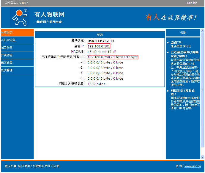 1、本内容涉及济南有人USR-TCP232-T2以太网模块在同一局域网连接、模拟通过公网连接及透传云的设置