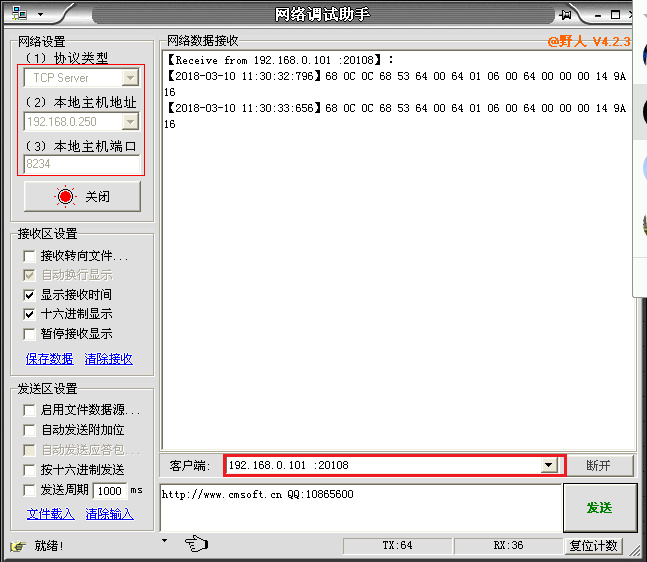 (1)硬件连接 (2)客户端电脑串口软件显示