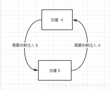 }也就是需要在A中注入B,在B中注入A,那么Spring在创建A的时候会出现这种现象:创建A实例后,在依赖注入时需要B,然后就去创建B,这时候发现又需要依赖注入 A ,这样就导致了循环依赖。