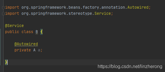 首先我们要知道什么是Spring的循环依赖问题。假如我们有两个bean,A 和 B。他们的代码简单如下: