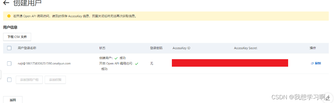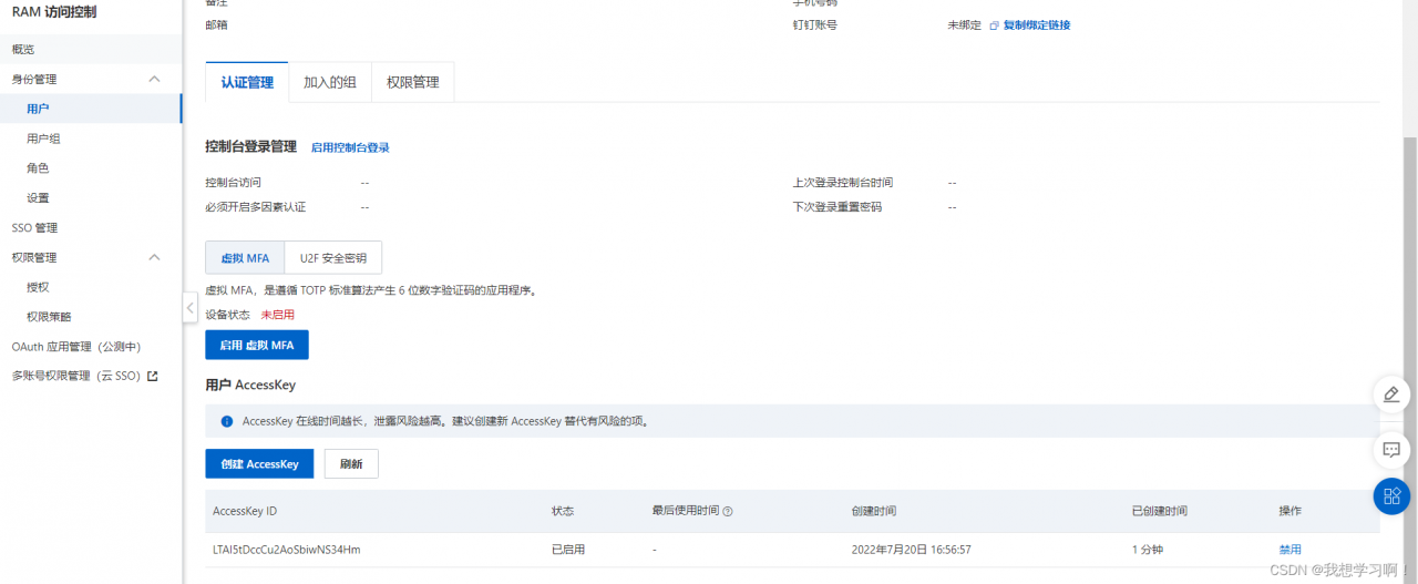 点击右上角,在弹出的窗口中点击【AccessKey管理】∶