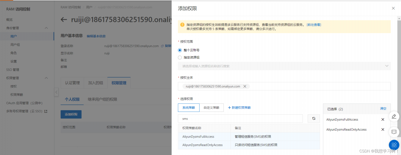 此处模拟了验证码的发送,真实发送需要AccessKey,详情见IDEA中的配置