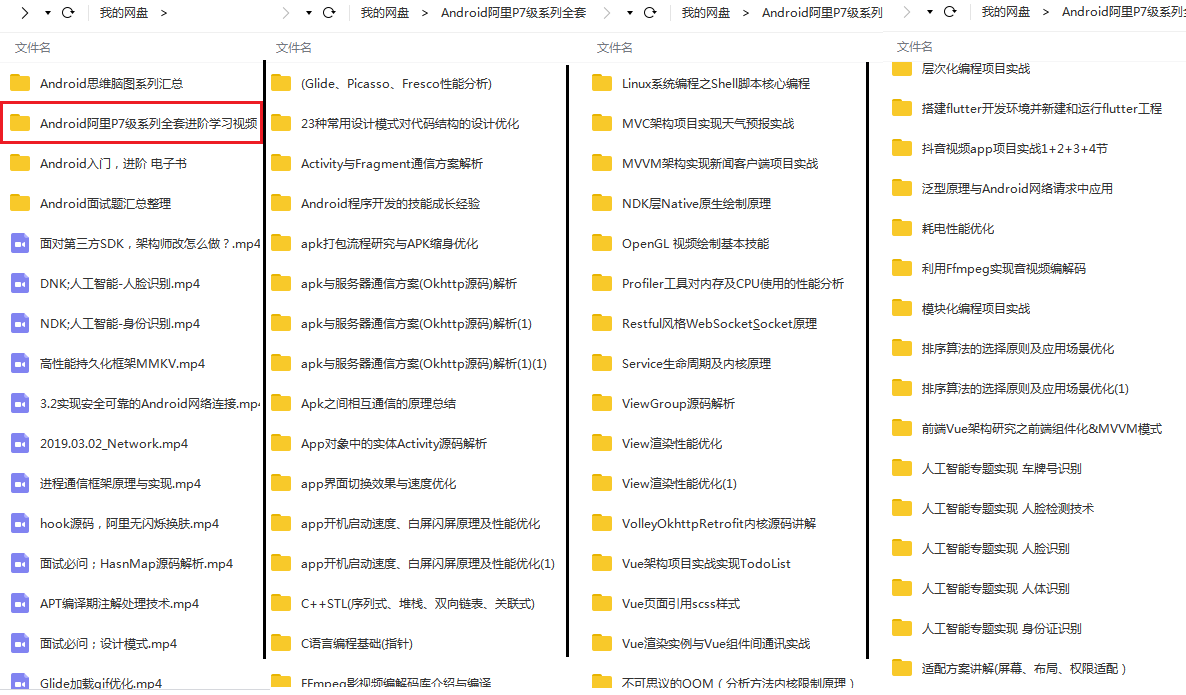 下面资料部分截图,诚意满满:特别适合有3-5年开发经验的Android程序员们学习。