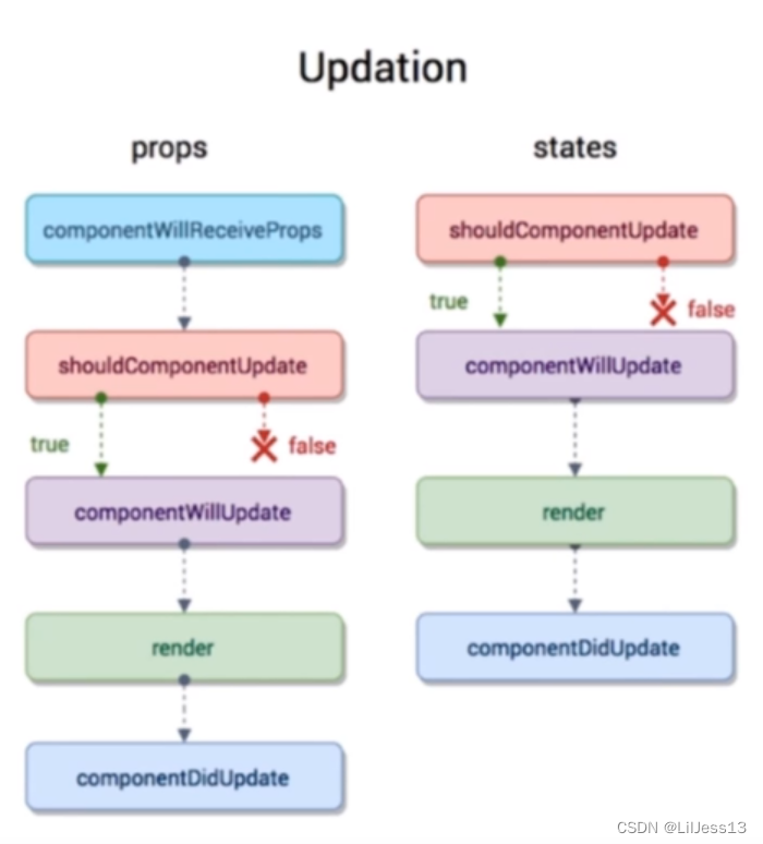 }shouldComponentUpdate函数判断当前的状态是否和下一个即将发生改变的状态一致,是的话返回false 不执行componentWillUpdate。这样就可以解决父组件在改状态改变时连同子组件一起重新渲染的问题。属于一个优化性能的方面