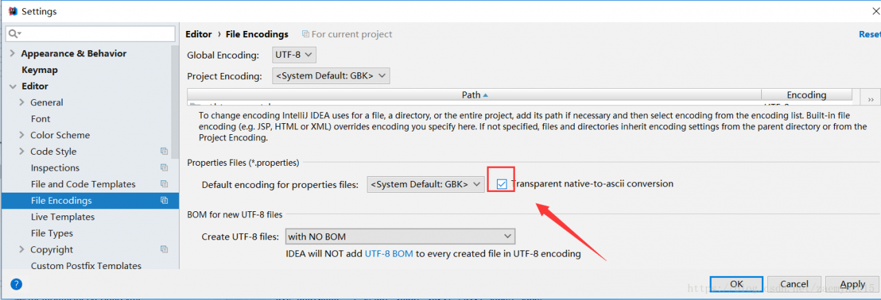 但一般将项目编码统一设置为UTF-8,以上的“File Encodings”可以将相关的编码都改成UTF-8.