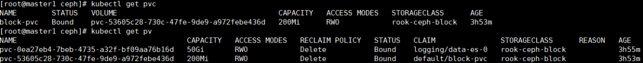 详解:这里创建相应的PVC,storageClassName:为基于rook Ceph集群的rook-ceph-block。