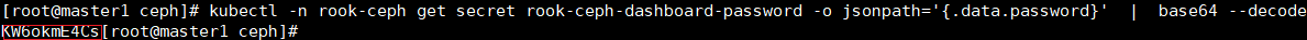 kubectl -n rook-ceph get secret rook-ceph-dashboard-password -o jsonpath='{.data.password}' | base64 --decodehttps://ip:port