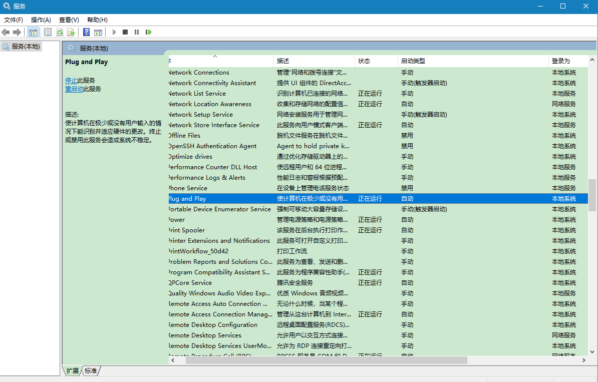 首先将Plug and Play服务的启动类型为:禁用,停止服务,点击应用,确定,此时启动类型为:禁用,服务状态为:已停止,