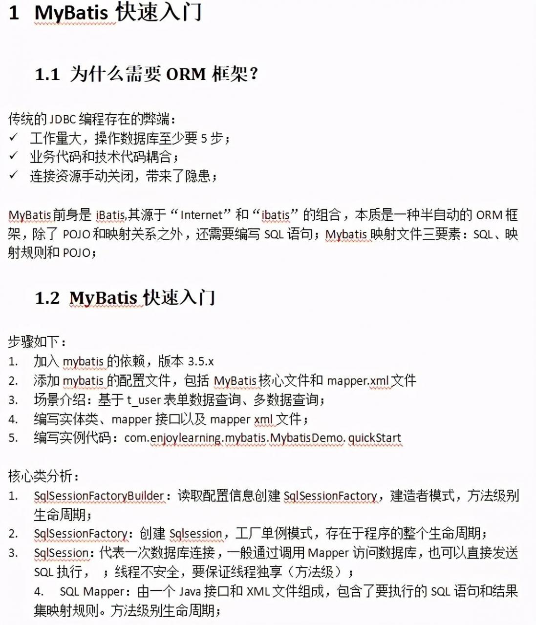 在这分享一个由工作十余年大佬整理出来的 《MyBatis源码学习文档》,这份文档从MyBatis源码的角度分析Mapper绑定过程、SqlSession操作数据库原理、插件实现原理等