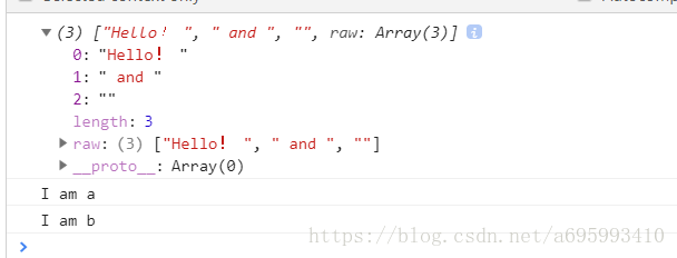 display`Hello! ${a} and ${b}`;看看控制台: