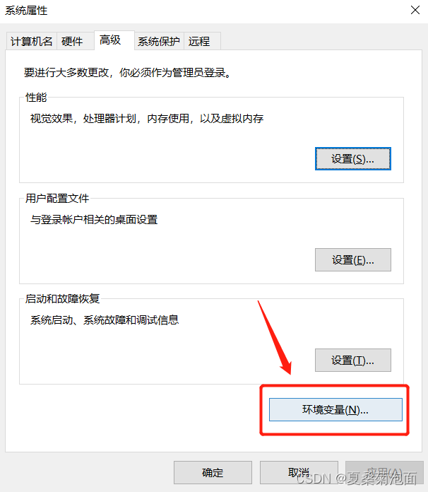 - “此电脑”右击选择“属性”,点击“高级系统设置”,再点击“环境变量”