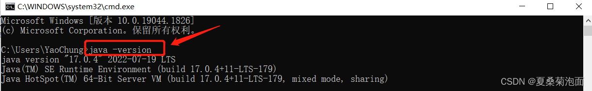 4.环境变量完成配置,进行验证是否成功:Win+R,输入cmd回车,在DOS界面输入java -version,未报错并能正常显示Java版本出来即配置成功!!!