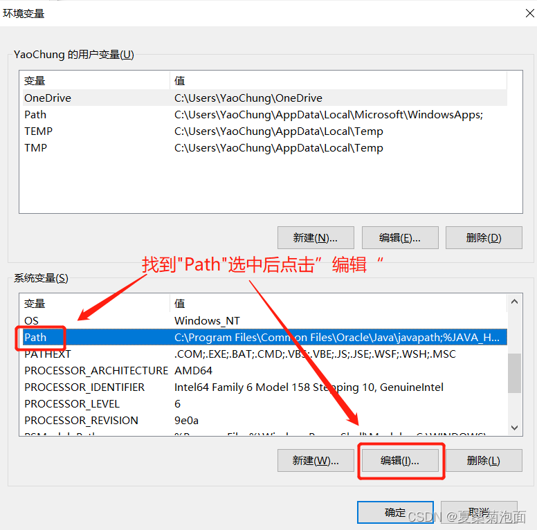 3.创建好JAVA_HOME后,在系统变量找到"Path"添加%JAVA_HOME%\bin,添加完成后记得要逐步点击各个窗口的“确定”