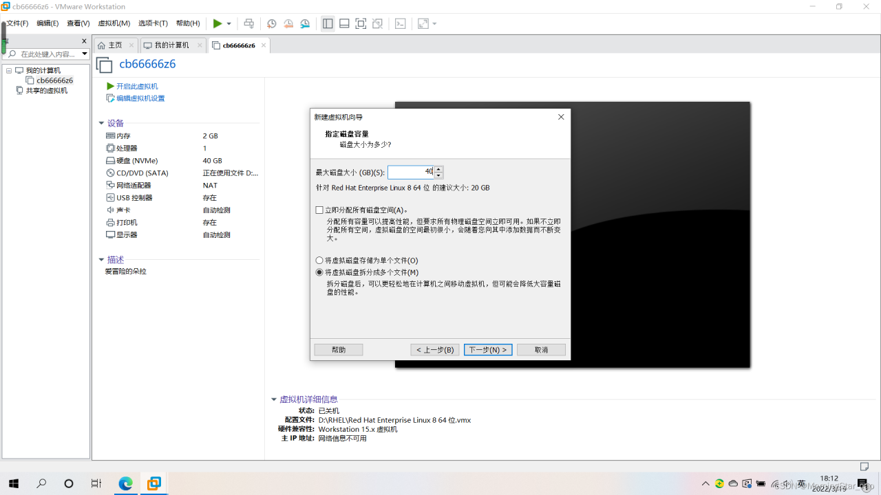 12.设定磁盘大小 40即可 其他默认